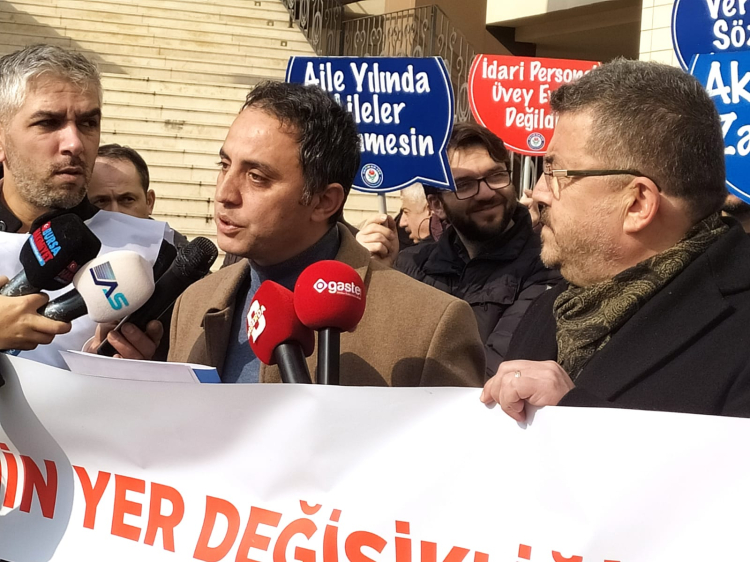 Bursa'da eğitimcilerin yetkili sendikası olan Eğitim Bir-Sen ve bağlı olduğu Memur-Sen Bursa İl Başkanı Ramazan Acar ile sendika üyelerinin katılımıyla idari personellerin yer değişikliği hakkı için eylem başlattı.