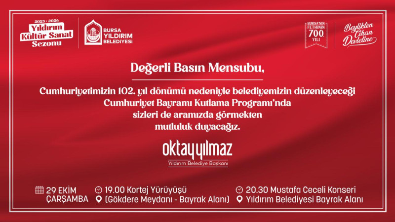 Cumhuriyet'in ilanının 102. yılı kutlamaları tüm yurtta olduğu gibi Bursa'da da başladı. Hafta sonuna kadar kentin her yerinin kırmızı-beyaz bayraklara bürüneceği ve konserler, anma programları başta olmak üzere pek çok kutlama etkinliklerinin yapılacağı programlarda 2 noktadaki etkinlik dikkat çekiyor.