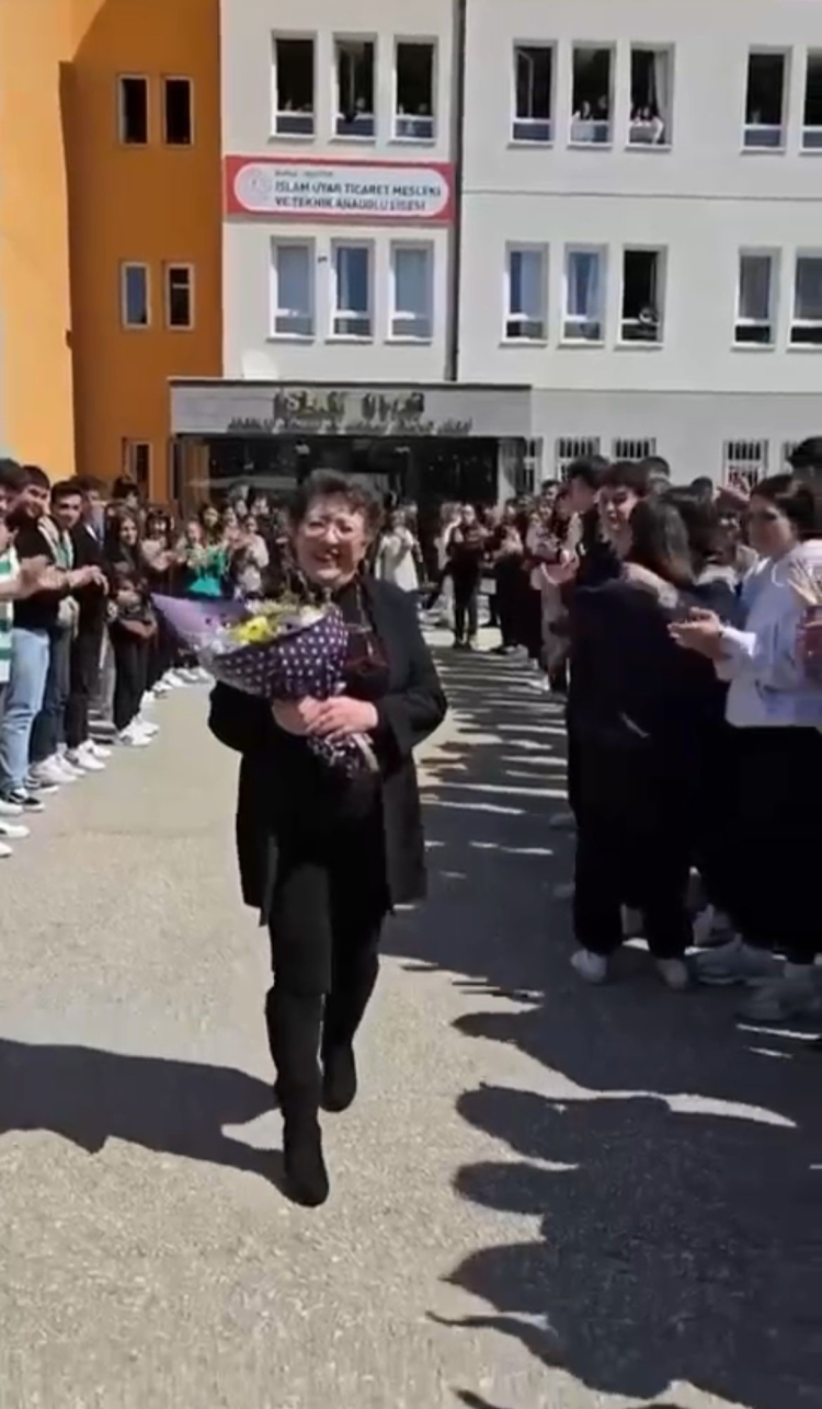 Merkez Nilüfer ilçesinde bulunan İslam Uyar Ticaret Mesleki ve Teknik Anadolu Lisesi'nde 30 yıl 7 aydır görev yapan matematik öğretmeni Güzin Akkör, emekli oldu. Öğretmenlerinin emekli olduğunu duyan öğrencileri ise öğretmenlerine sürpriz hazırlamaya karar verdi. Okulun koridorlarında sıra olmaya başlayan öğrenciler, sırayı okul çıkışına kadar uzattı. Teneffüs zilinin çalmasıyla beraber sınıf kapısını açan Akkör'e, çiçek takdim edildi. Okul bahçesine kadar alkışlarla uğurlanan matematik öğretmeni Akkör'ün duygusal anları, saniye saniye amatör kamera ile kaydedildi.