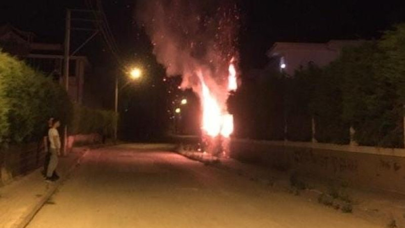 Bursa'nın İnegöl ilçesi Hamidiye Mahallesi'nde bulunan bir sitenin bahçesindeki çam ağaçları kişi veya kişilerce ateşe verildi.
