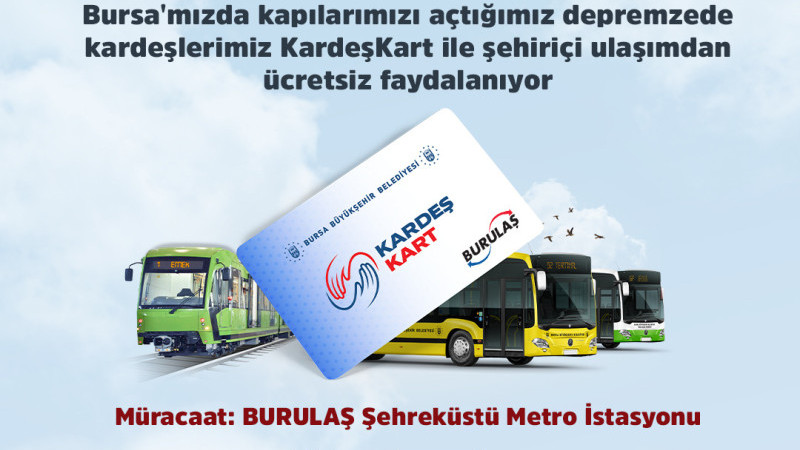 Depremin yaralarının bir an önce sarılması için bölgede arama kurtarmadan altyapı hizmetlerine kadar önemli çalışmaları hayata geçiren Bursa Büyükşehir Belediyesi, devreye aldığı sosyal projelerle depremzedelerin hayatını kolaylaştırmaya devam ediyor. Daha önce deprem bölgelerinden gelerek Bursa’ya yerleşen afetzedeler için Merinos AKKM’de mağaza açıp ‘giyimden hijyene’ depremzedelerin tüm ihtiyaçlarını karşılayan Büyükşehir Belediyesi, şimdi de afetzedelerin şehir içi ulaşımları için ‘Kardeş Kart’ uygulamasını devreye aldı.