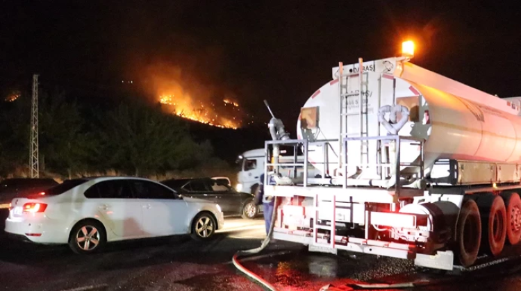 Ekipler, rüzgarın da etkisiyle yayılan alevleri kontrol altına almak için arazözlerle karadan, yangın söndürme helikopteriyle de havadan müdahale ediyor.
