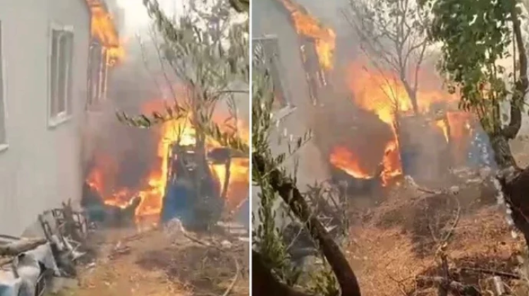 Karamürsel'de rüzgarın etkisiyle büyüyen yangın bir yerleşim yerine ulaştı. Akçat köyünden gelen görüntülerde bir evin alevlere teslim olduğu görüldü. Görüntüyü çeken kişinin, "Kaç, artık hiçbir şey yapamayız." dediği duyuldu.