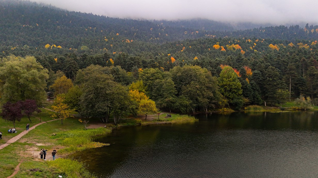 Bolu şehir merkezine 13 kilometre uzaklıkta bulunan Gölcük Tabiat Parkı’nda ağaçların sarı, turuncu ve kızıl tonlara bürünmesiyle kartpostallık manzaralar oluştu.