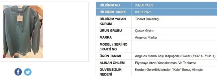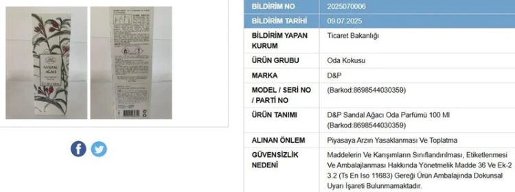 Ticaret Bakanlığı, 9 Temmuz 2025’te yayımladığı bildirimle, tüketici sağlığı açısından riskli bulunan dört ürünün piyasadan toplatılmasına ve satışının yasaklanmasına karar verdi. Bildirimler, Güvensiz Ürün Bilgi Sistemi üzerinden yapıldı.