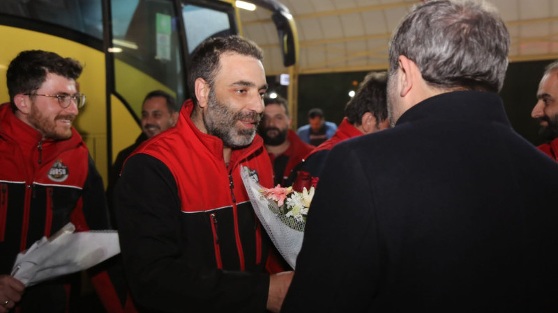 Deprem bölgesindeki arama kurtarma çalışmalarının son bulmasının ardından, görevlerini tamamlayarak Gürsu’ya dönen Gürak (Gürsu Belediyesi Arama Kurtarma Ekibi), Gürsu Belediye Başkanı Mustafa Işık tarafından terminalde karşılandı.
