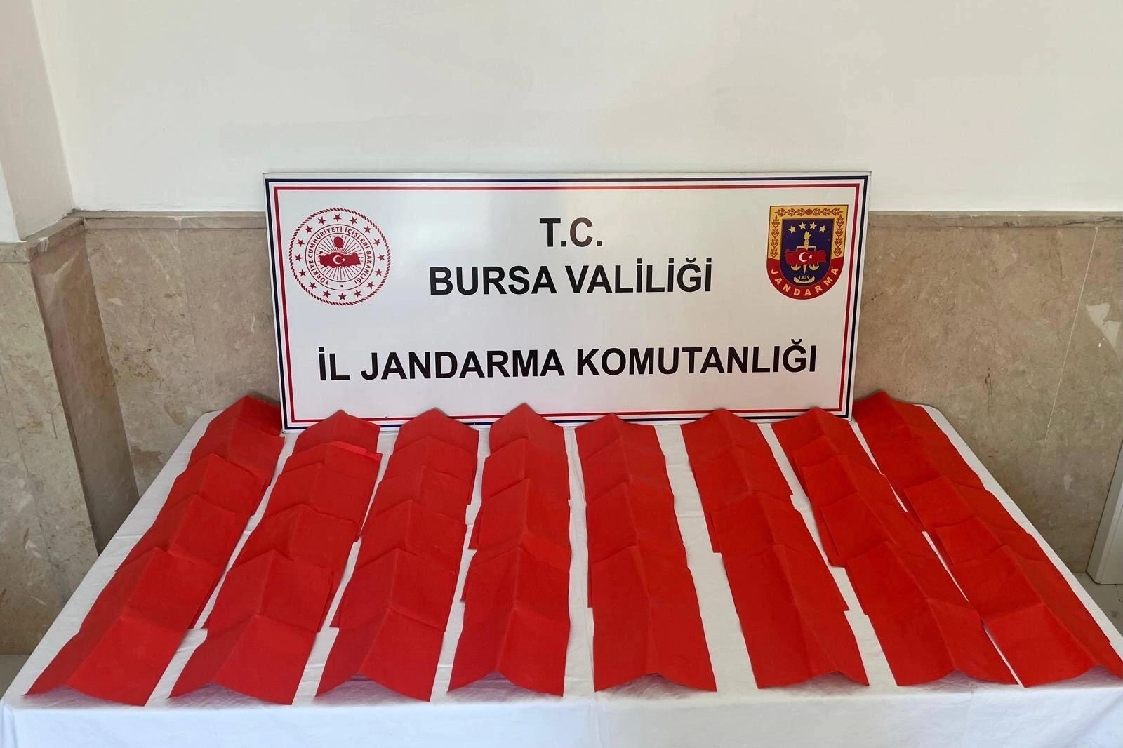 Bursa Cumhuriyet Başsavcılığı koordinesinde, İl Jandarma Komutanlığı’na bağlı Narkotik Şube Müdürlüğü ekipleri tarafından gerçekleştirilen operasyonda durdurulan şüpheli şahsın üst aramasında, paket içerisinde A4 kağıdına emdirilmiş halde 37 parça sentetik kannabinoid bulundu. Ele geçirilen maddenin toplamda yaklaşık 46 bin içimlik olduğu belirlendi. Gözaltına alınan şüpheli hakkında adli işlemler başlatılırken, olayla ilgili soruşturmanın sürdüğü öğrenildi. Bursa İl Jandarma Komutanlığı, uyuşturucu madde ticareti yapan şahıslara yönelik mücadelenin kararlılıkla devam edeceğini bildirdi.
