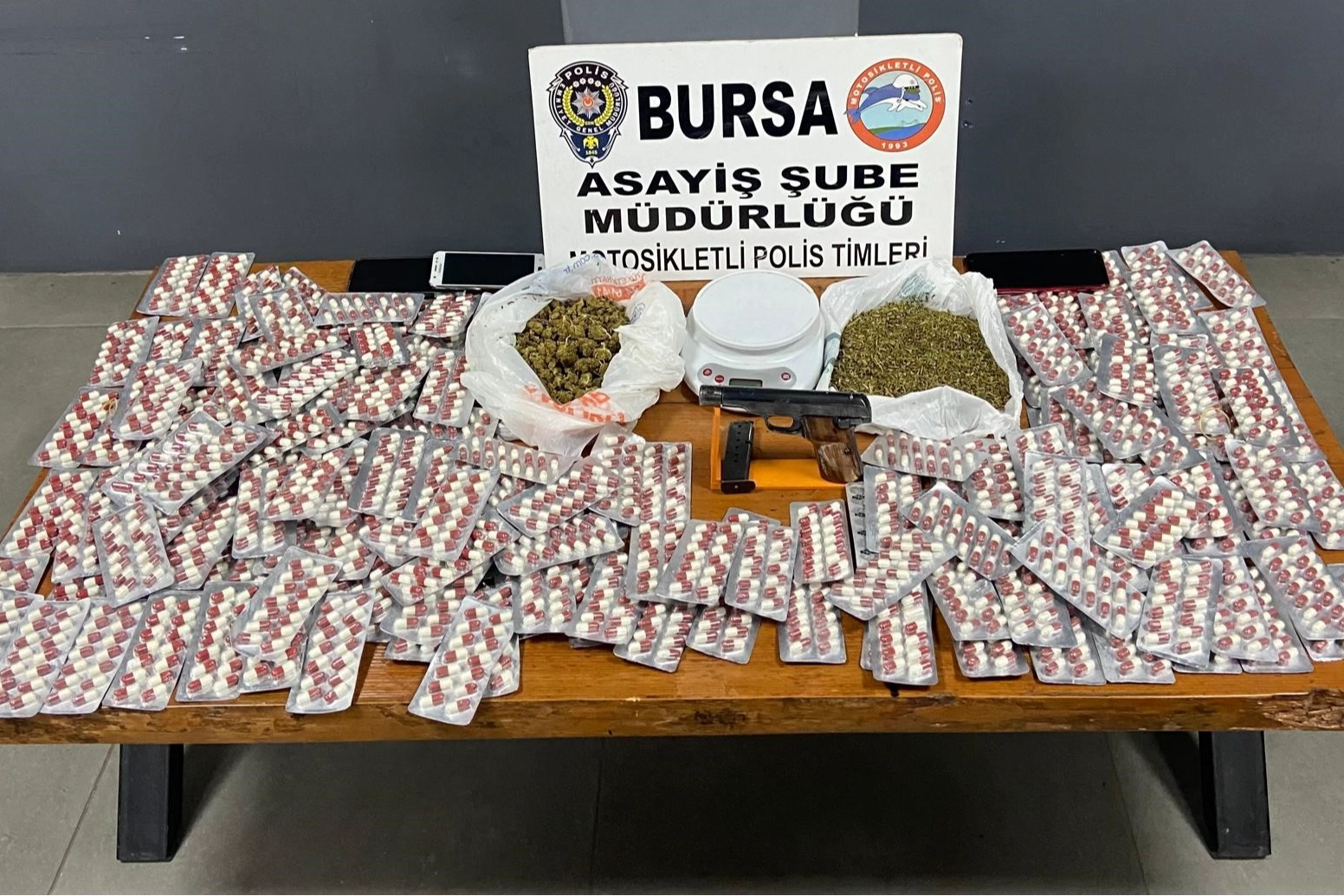 Şahsın ikametinde yapılan aramada, 1 adet ruhsatsız tabanca, 2 bin 516 adet sentetik hap, daralı ağırlığı 225 gram olan bitkisel cannabis (esrar) maddesi ve 1 adet hassas terazi ele geçirildi. 7 ayrı suç kaydı bulunduğu öğrenilen şüpheli, ele geçirilen suç unsurlarıyla birlikte gözaltına alınırken olayla ilgili adli işlemlerin titizlikle sürdürüldüğü bildirildi.