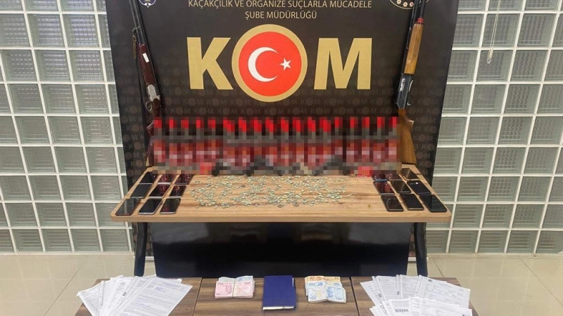 Operasyon kapsamında belirlenen adreslere yapılan aramalarda 1 adet ruhsatsız tabanca, 3 adet kuru sıkı tabanca, 3 adet av tüfeği, 748 adet tarihi sikke, 168 adet fişek, 27 şişe kaçak alkol, 108 bin TL nakit para, çok sayıda belge ve doküman ele geçirildi.