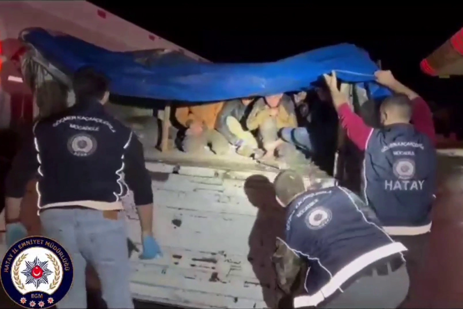 Çalışmalar kapsamında; 18 Şubat günü Antakya-İskenderun yolu üzerinde durdurulan tırın dorsesinde branda altında taşınan ve Türkiye’de geçerli oturma izni olmadığı anlaşılan 12 yabancı uyruklu göçmen yakalandı.