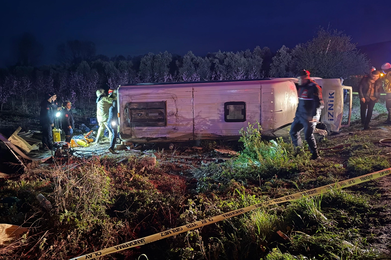 Kaza, Bursa'nın İznik ilçesi Çakırca Mahallesi sınırlarından geçen İznik-Orhangazi Karayolunda, saat 05.30 sıralarında meydana geldi. Özel bir şirkete ait olan 16 H 1803 plakalı yolcu minibüsü, sürücüsünün direksiyon hakimiyetini kaybetmesi sonucu yolun sol tarafına devrildi.