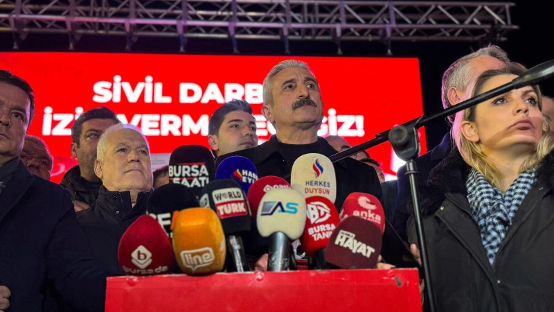 Bursalılar Kent Meydanı’nı hınca hınç doldururken basın açıklamasına Bursa Büyükşehir Belediye Başkanı Mustafa Bozbey’in yanı sıra,İl Başkanı Nihat Yeşiltaş, Bursa Milletvekili Orhan Sarıbal, Osmangazi Belediye Başkanı Erkan Aydın, Mudanya Belediye Başkanı Deniz Dalgıç, Gemlik Belediye Başkanı Şükrü Deviren, Harmancık Belediye Başkanı Haşim Ali Arıkan, CHP Osmangazi İlçe Başkanı Raşit gürbüz, Yıldırım İlçe Başkanı İlhami Gün, Nilüfer İlçe Başkanı Özgür Şahin, Mudanya İlçe Başkanı Furkan Kurtuluş, Gemlik İlçe Başkanı Servet Pehlivan, Mustafakemalpaşa İlçe Başkanı Gökhan Demir, Orhangazi İlçe Başkanı Berna il, Kestel iİçe Başkanı Yıldıray Atlı, TMMOB'a bağlı oda temsilcileri, DEM Parti, Emek Partisi, TKP, Türkiye İşçi Partisi ve Sol Parti temsilcileri, DİSK, TümBel- Sen, Eğitim-Sen ve KESK temsilcileri, ve Uludağ üniversitesi öğrencileri katıldı.