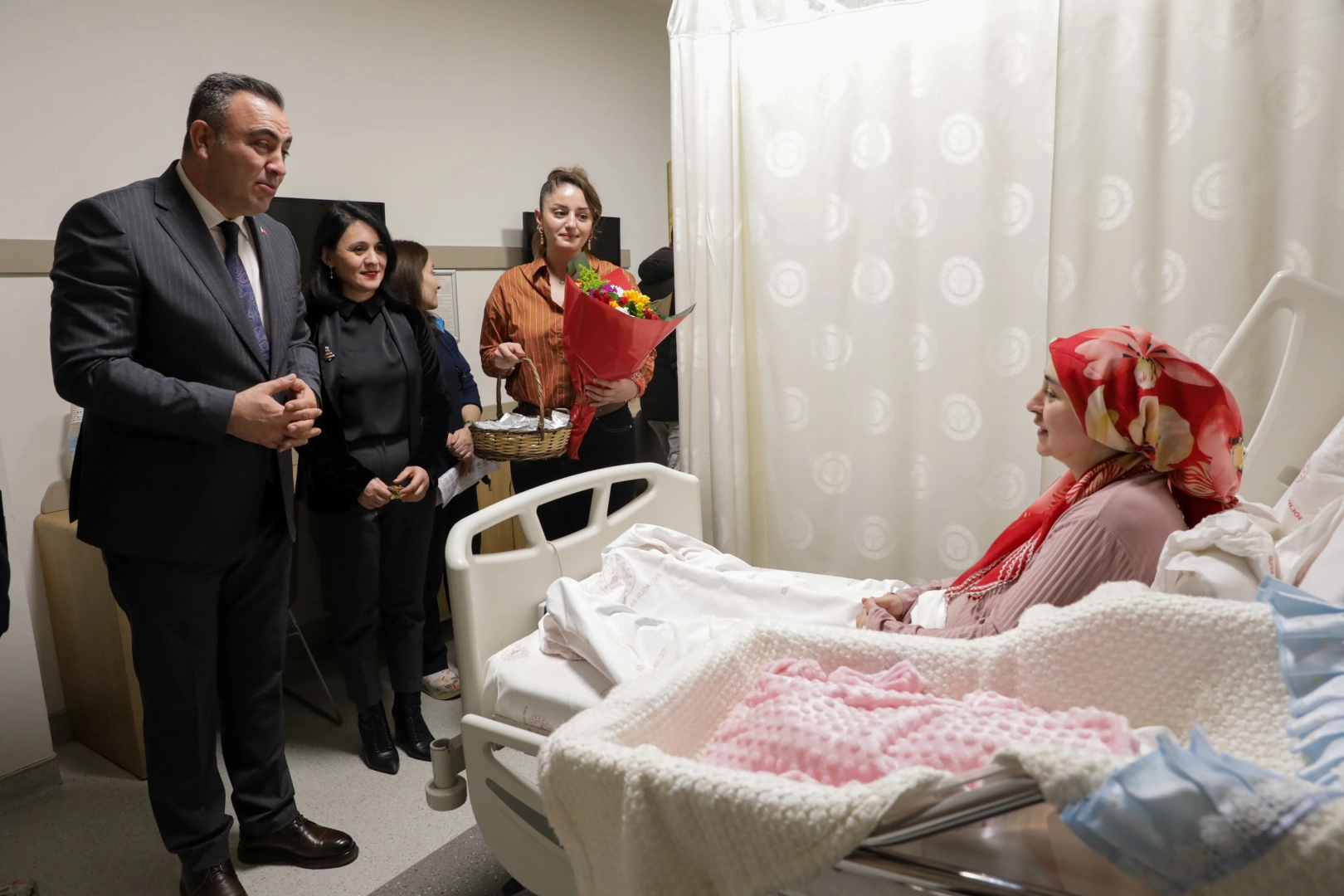 Bursa Büyükşehir Belediyesi Başkanvekili Mehmet Aydın Saldız, Bursa Şehir Hastanesi’nde 2025’in son ve 2026’nın ilk bebeklerini ailesiyle birlikte ziyaret ederek, bebeklere altın taktı ve ailelere çiçek ile hediye seti verdi.