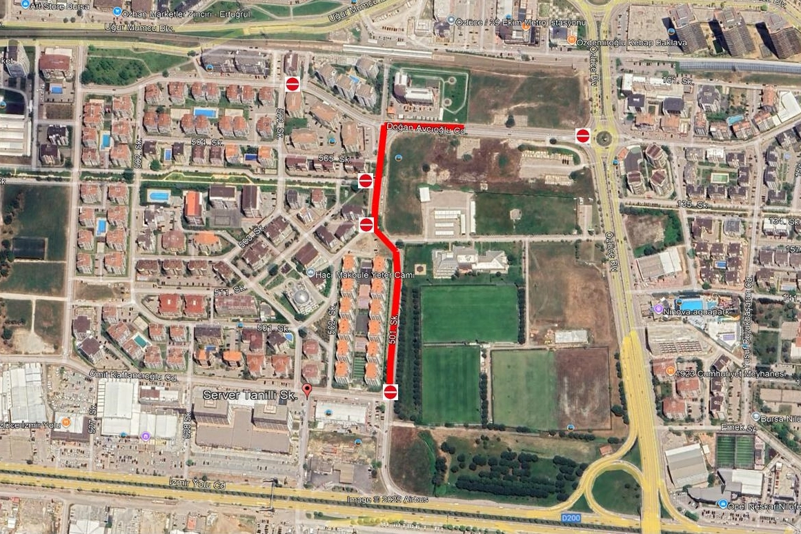BUSKİ Genel Müdürlüğü Kanalizasyon Dairesi Başkanlığı tarafından yapılacak çalışmalar kapsamında Nilüfer İlçesi 29 Ekim Mahallesi Doğan Avcıoğlu Caddesi üzerinde 07 Ocak 2026 – 15 Ocak 2026 tarihleri arasında yağmur suyu deplase imalatı yapılacaktır. Söz konusu imalatların güvenli ve sağlıklı bir şekilde gerçekleştirilebilmesi amacıyla gerekli trafik izinleri alınmış olup, çalışma süresince Doğan Avcıoğlu Caddesi araç trafiğine kapatılacaktır. Çalışmalar süresince sürücülerin trafik işaret ve işaretçilerine uymaları gerekmektedir.
