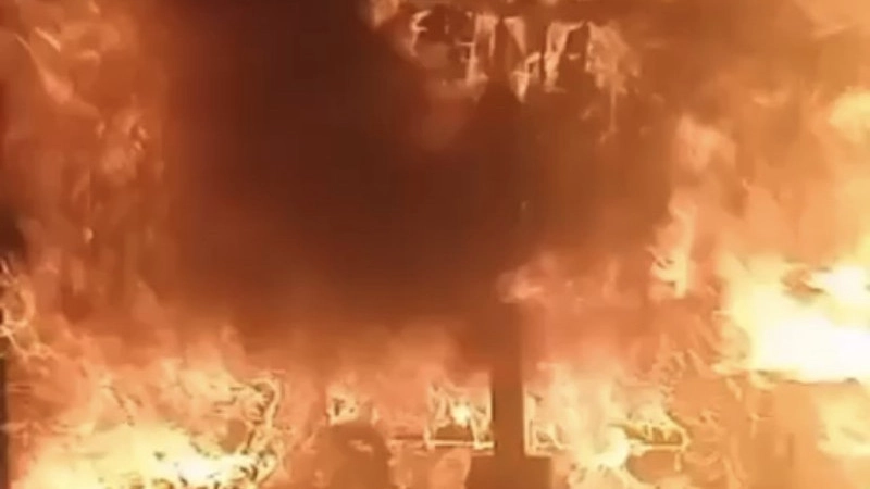 Çiftliğin alev alev yanma anı cep telefon kamerasına yansıdı. Yangının çıkış sebebi araştırılıyor.