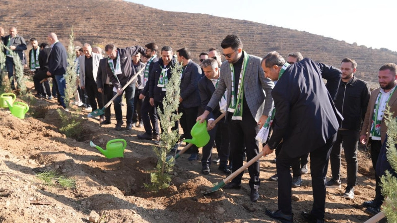 Bursaspor Kulübü Başkanı Enes Çelik, Teknik Direktör Tahsin Tam, Gürsu Belediye Başkanı Mustafa Işık ile beraber yeşil beyazlı futbolcular ile Uludağ Organize Sanayi yönetici ve iş insanları, Karahıdır ve İğdir bölgesinde yanan ormanlık alanlarda fidan dikimi gerçekleştirdi.