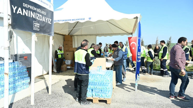 Hatay’da yaşamın devam etmesi için üretimin sürmesi gerekirken, Bursa Büyükşehir Belediyesi ‘üretimi teşvik etmek ve sanayi çarklarının dönmesini sağlamak için’ MOBSAN’a yemek desteği veriyor. BURFAŞ tarafından sanayi sitesi içinde her öğlen yaklaşık 1500 işçiye sıcak yemek veriliyor. Öğle yemeğine çıkan işçiler, gruplar halinde BURFAŞ çadırına gelip ‘karınlarını doyurduktan sonra’ tekrar iş başı yapıyor.