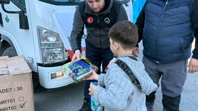 Osmangazi Belediyesi, depremin etkilediği çocuklara moral vermek ve yüzlerini bir nebze olsun güldürebilmek adına oyuncaklar dağıtıyor.