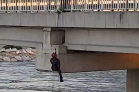 Bursa'da köprü altında asılı kalan güvercin olay yerine halatla inen Büyükşehir itfaiye ekipleri tarafından kurtarıldı.
