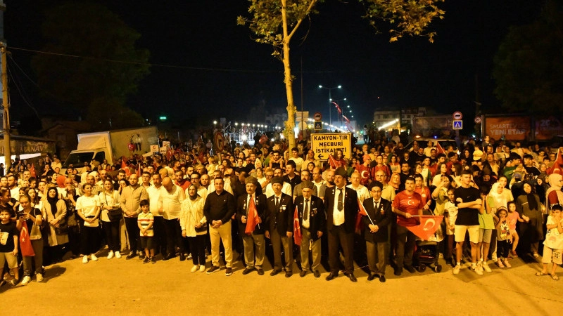 Etibank’dan başlayarak, Heykel Meydanı’nda sona eren yürüyüşte, meşaleler, Kirmasti Off-Road araçlarının ışıklarıyla Mustafakemalpaşa’da etkileyici görüntüler ortaya çıktı. Yüzlerce Mustafakemalpaşalı Mustafakemalpaşa Belediyesi Mehteran takımı eşliğinde, milli marşlar, coşkuyla Türk bayrakları sallayarak zaferin anlamını bir kez daha vurguladılar.