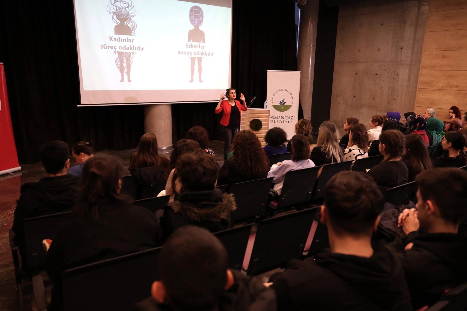 Osmangazi Belediyesi’nin düzenlediği atölyede katılımcılar, kelime seçimleri ve beden dilinin duygu durumunu nasıl olumluya çevirebileceğini öğrendi.