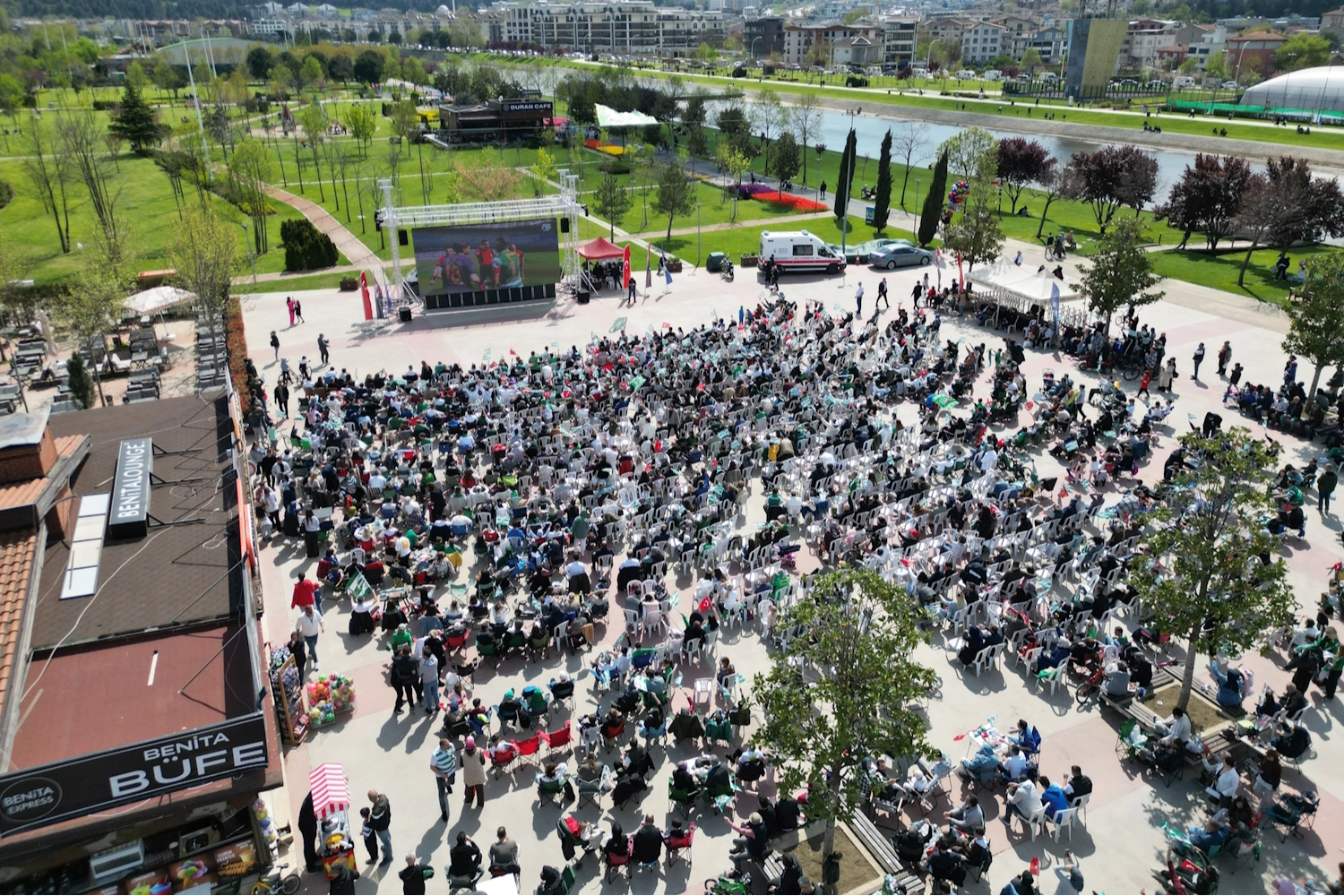 Hüdavendigar Kent Parkı ve Kültürpark Atatürk Stadyumu girişinde kurulan dev ekranlarda şampiyonluk maçını izleyen on binlerce Bursalı, Bursaspor’un 5-1 kazandığı maçın bitiş düdüğüyle birlikte alanı bayram yerine çevirdi. Hem galibiyet hem de şampiyonluk coşkusunu yaşayan Bursalılar, organizasyon için Büyükşehir Belediyesi’ne teşekkür etti.
