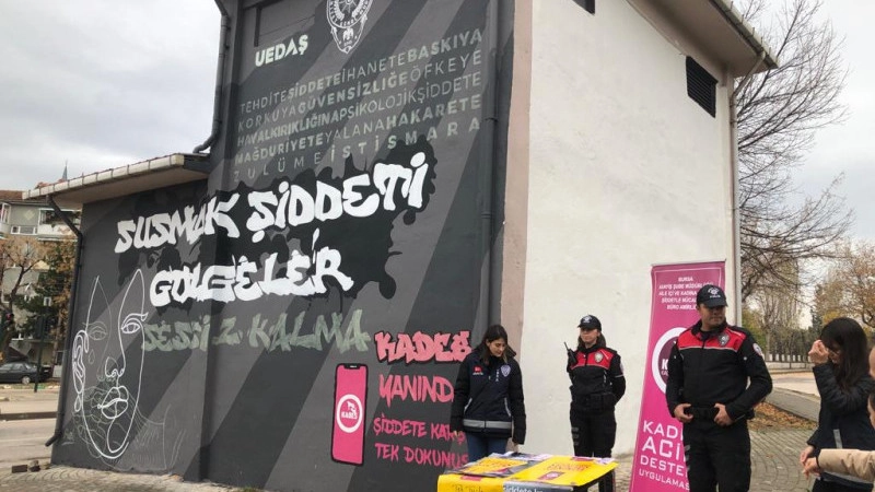 Güney Marmara'da 5 milyonun üzerinde nüfusa elektrik dağıtım hizmeti veren UEDAŞ, 64. trafosunu Bursa İl Emniyet Müdürlüğünün iş birliğiyle boyadı. Bugüne kadar emniyet kemerinin öneminden madde bağımlılığına, kan bağışından enerji tasarrufuna kadar birçok toplumsal konuyu ele alan UEDAŞ, bu kez kadına şiddetle mücadele için uyardı.