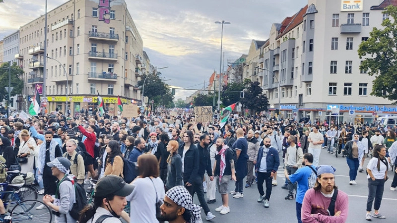 Almanya'nın İsrail'e silah satışına devam etmesine karşı çıkan göstericiler, Almanya Başbakanı Olaf Scholz başta olmak üzere, hükümetteki siyasilere seslenerek, İsrail saldırılarına yardım edenlerin bir gün hesap vermek zorunda kalacaklarını vurguladı. Göstericiler, İsrail'e satılan silahların yüzde 47'sinin Almanya'dan gönderildiğini belirterek, 7 Ekim'den bu yana Almanya'nın İsrail'e silah satışının 10 kat arttığını açıkladı. Satılan silahların yüzde 98'inin İsrail'in Gazze'de Filistinlileri katletmeleri ve baskı altına almaları için kullanıldığını ifade eden göstericiler, bu silahlarla çocukların ve kadınların öldürüldüğünü aktardı. Göstericiler, Almanya'nın sivil ölümlerine göz yumarak bu suça ortak olduğunu belirtti. Yaklaşık 3 bin kişinin katıldığı protestoda, zaman zaman göstericilerle polis arasında gergin anlar yaşandı. Polise, şişe ve yumurta fırlatılırken, bazı göstericiler gözaltına alındı.