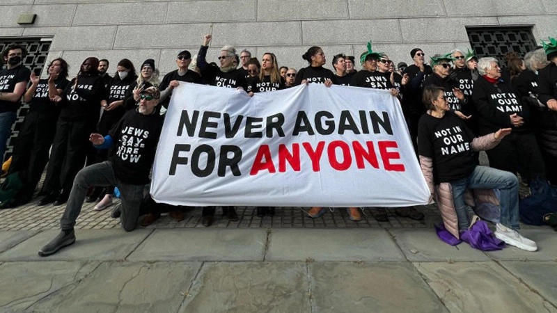 İsrail’in Filistin’e yönelik saldırılarında can kaybı 10 bini aşarken, dünya genelindeki birçok Yahudi grup ateşkes çağrısı yapmaya devam ediyor. ABD’nin New York kentindeki Liberty Adası’nda yer alan ülkenin simgelerinden Özgürlük Heykeli önünde Filistin’e destek gösterisi gerçekleştirildi. Barış için Yahudilerin Sesi (JVP) adlı grubun çağrısıyla toplanan yaklaşık 500 kişi, Özgürlük Heykeli önünde pankart açıp oturma eylemi yaptı. Gazze’de ateşkes yapılmasını isteyen eylemciler, “Bütün dünya izliyor”, “Filistinliler Özgür Olmalı” ve “Bir Daha Hiç Kimse İçin Asla” yazılı pankartlar açtı.