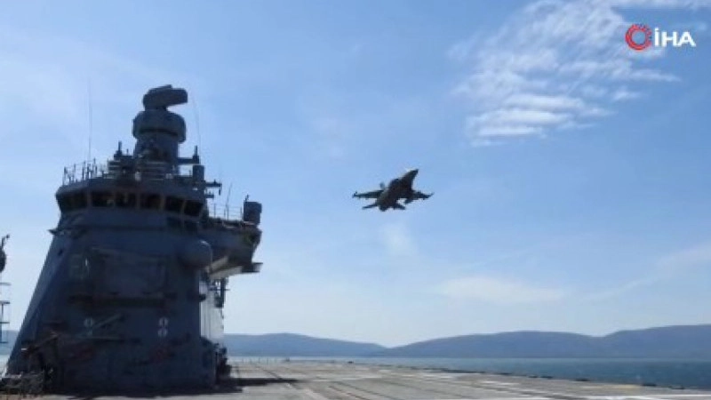 Türkiye'nin yerli ve milli imkanlarıyla üretilen TCG Anadolu, 2 adet F-16 uçağının iştiraki ile Marmara Denizi'nde eğitimler icra etti.