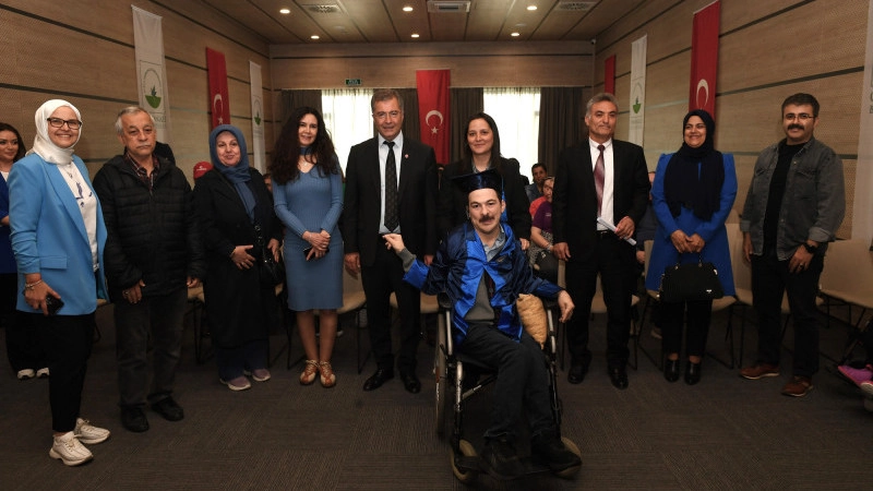 Koyduğu iki hedefi de gerçekleştiren Fırat Kıpçak için Osmangazi Belediyesi Engelliler Bakım Merkezi OBAM’da mezuniyet töreni düzenlendi. Mezuniyet cübbesi ve kepini giyen Kıpçak, diplomasını Osmangazi Belediye Başkan Yardımcısı Mücahit Yıldızhan ve Osmangazi Halk Eğitim Müdürü Zeynep Terece’nin elinden aldı. Mezuniyet töreninde arkadaşlarının yalnız bırakmadığı özel gereksinimli Fırat Kıpçak, kepini havaya atarak mutluluğunu arkadaşlarıyla paylaştı.