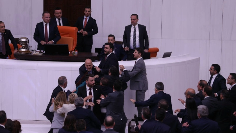 Kürsüye gelen milletvekilleri arasında yumruklu kavga çıktı. Yaklaşık 5 dakika süren kavganın ardından birleşime 45 dakika ara verildi.