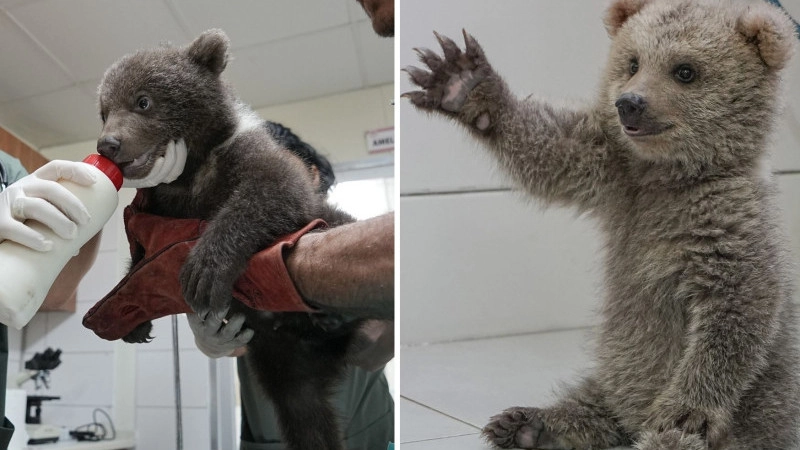 "Karabük’ün Yenice ilçesinde 20 Mart’ta orman işçileri tarafından bitkin halde bulunan 1,5 aylık yavru boz ayı, hızla Doğa Koruma ve Milli Parklar ekiplerine bildirildi. İlk müdahalenin ardından Celal Acar Yaban Hayvanı Kurtarma ve Rehabilitasyon Merkezi’ne götürülen yavru ayıya ‘Bulut’ adı verildi. Burada yapılan kontrollerde 2 kilo 720 gram ağırlığında olduğu tespit edilen Bulut, özel beslenme programına alındı. Benzer şekilde, Bingöl’de 12 Nisan’da bir çoban tarafından bulunan dişi yavru boz ayı da koruma altına alındı. Yapılan incelemede 1,5 aylık olduğu belirlenen yavru ayı, rehabilitasyon merkezine nakledildi ve ‘Yağmur’ adı verildi. Yağmur’un ise 4 kilo 200 gram ağırlığında olduğu tespit edildi. İki yavru ayı, merkezde titizlikle sağlık kontrollerinden geçiriliyor ve beslenme uzmanları tarafından hazırlanan özel diyetle büyütülüyor." Celal Acar Yaban Hayvanı Kurtarma ve Rehabilitasyon Merkezi'ndeki ayı barınağı 73 ayıya ev sahipliği yapıyor. Her gün sağlık kontrolleri ve kilo ölçümleri yapılan yavru ayılar günde 6 kez laktozsuz süt, bal, haşlanmış yumurta, krema ve multivitamin takviyesiyle besleniyor. Bulut ve Yağmur isimli sevimli yavru ayılar, güvenli yuvalarında sağlıkla büyüyor. Yaşadıkları keyifli anları izlemek ise başta çalışanlar olmak üzere onları gören herkese mutluluk veriyor.
