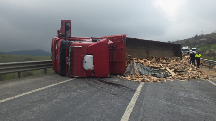 Yalova-Bursa kara yolunda tahta yüklü tırın devrildiği kaza sonucu 1 kişi yaralandı. Bursa yönü trafiğe kapatıldı.