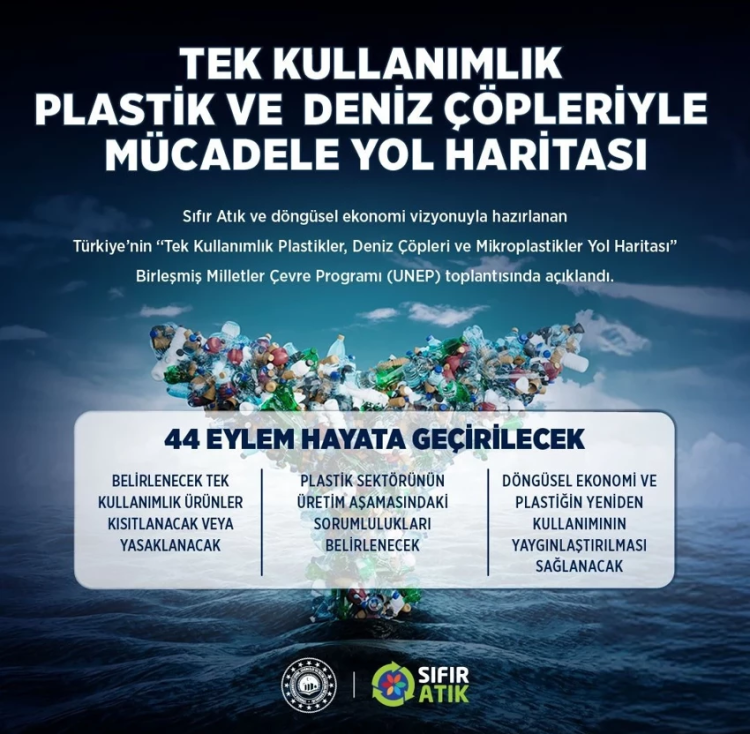 Çevre, Şehircilik ve İklim Değişikliği Bakanlığı, Çevre Yönetimi Genel Müdürlüğü'nün; literatür taramaları, kamu ve özel sektör temsilcilerinin katkılarının alındığı çalıştaylar, kurumsal anket ve Türkiye İstatistik Kurumu tarafından gerçekleştirilen kamuoyu anketi sonuçlarına dayanarak hazırladığı, 'Tek Kullanımlık Plastikler, Deniz Çöpleri ve Mikroplastikler Yol Haritası'nda 22 kamu kurum ve kuruluşu kapsayacak 44 eylem yer aldı. Yol haritasıyla tek kullanımlık plastiklerin geri dönüşümle üretilmesinin yaygınlaştırılması, aynı zamanda tüketiminin azaltılmasına yönelik adımların hayata geçirilmesi sağlanacak. Mikroplastikler de dahil olmak üzere ekosisteme deniz çöpü girdilerini azaltmak, deniz ve kıyı ekosistemleri üzerindeki deniz çöpü baskısını hafifletmek için izlenecek adımlar belirlendi. Yol haritasında plastik sektöründen başlanarak üretim ve kullanımda kısıtlamalar ile çevre dostu alternatiflerin yaygınlaştırılmasını sağlayacak yasal düzenlemeleri de içeren eylem adımları sıralandı.