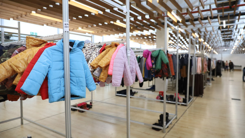 AFAD’ın kontrolünde afet bölgelerinden başka şehirlere tahliyeler düzenli olarak devam ederken, gerek akrabalarının yanına yerleşmek gerekse de hayata yeni bir başlangıç yapabilmek için Bursa’ya gelen afetzedelere Büyükşehir Belediyesi kucak açtı. Kimileri enkaz altından çıkarılan, kimileri ise akrabalarını, yakınlarını, varını yoğunu kaybedip Bursa’ya gelen deprem mağdurlarının ihtiyaçlarının karşılanması için de seferberlik başlatıldı. Kongre merkezinin sergi salonları adeta bir mağaza gibi düzenlendi. Gönüllüler tarafından getirilen yeni eşyalar burada yaş gruplarına ve bedenlerine göre asıldı. Sadece yeni eşyaların yer aldığı mağazaya gelen afetzedeler, deneyerek, beğenerek seçtikleri giyimden hijyen malzemelerine kadar tüm ihtiyaçlarını gönül rahatlığı ile alabiliyor. Tam bir hüznün hakim olduğu mağazada depremzedelerin yaşadığı korku, acı ve keder gözlerden okunuyor.