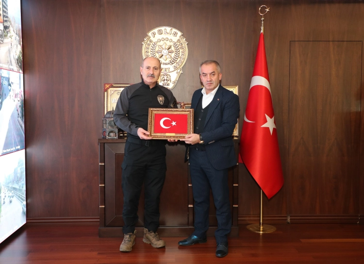 Ziyaretin sonunda Başkan Erkol, İl Emniyet Müdürü Zaimoğlu'na Türk Bayrağı tablosu hediye etti.