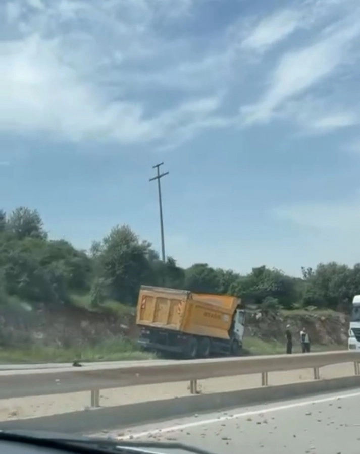 Bursa'nın Kestel ilçesinde kontrolden çıkan bir kamyon yol kenarındaki bariyerleri aşarak refüje daldı. Kazada şans eseri yaralanan olmazken, araçta ve çevrede maddi hasar meydana geldi.