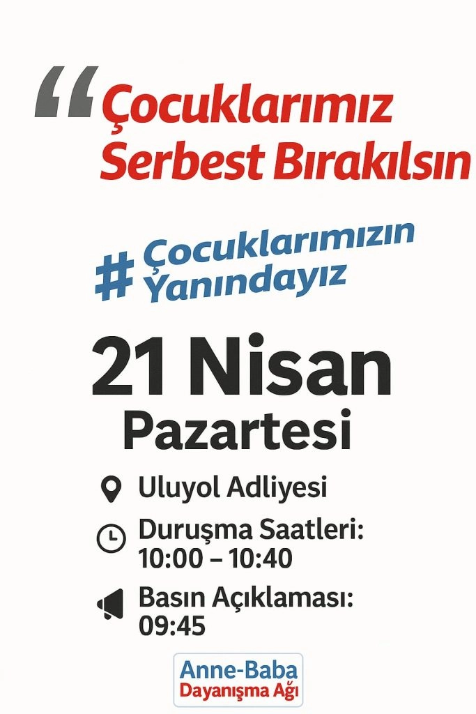 Bursa Anne-Baba Dayanışma Ağı da Pazartesi günü Uluyol Adliyesi önünde basın açıklaması gerçekleştirecek.