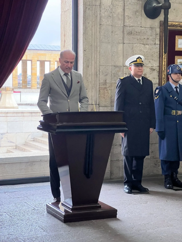 Saygı duruşu ve çelenk sunumunun ardından ziyarete ilişkin anı defterine duygu ve düşüncelerini yazan Bursa Artvin Vakfı Başkanı Doç. Dr. Adnan Demirci, Atatürk’e duydukları bağlılığı, saygı ve özlemi sözcüklerle dile getirdi.