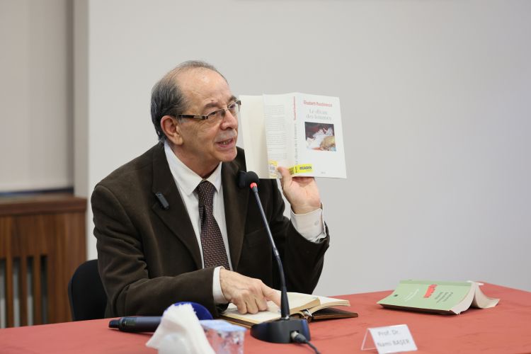 Programa konuşmacı olarak katılan Prof. Dr. Nami Başer, ‘İnsanın Temel Sorunları: Etik ve Eros’ başlığında varlığın temel taşlarını felsefi bir bakış açısıyla ele aldı. Etkinliğin sonunda Kültür, Sanat ve Sosyal İşler Dairesi Başkanı Şafak Baba Pala tarafından Prof. Dr. Nami Başer’e hediye verildi.