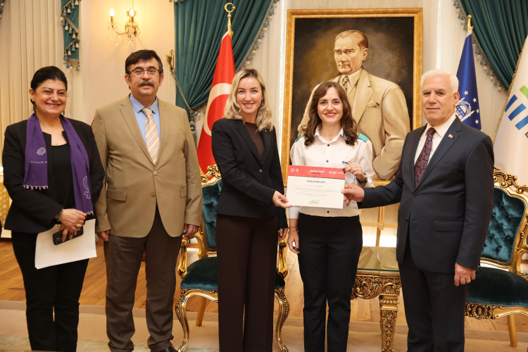 ‘Eğitim Destekli İstihdam Projesi’ kapsamında düzenlenen ‘tramvay/metro sürücülüğü eğitimlerini başarıyla tamamlayan 10 kadına, Bursa Büyükşehir Belediye Başkanı Mustafa Bozbey tarafından belgeleri verildi.
