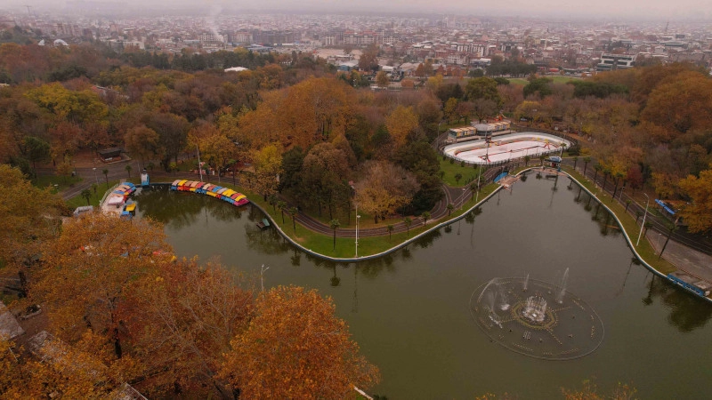 Bursa'da kentin kalbinde yer alan Reşat Oyal Kültürparkı sonbaharda görsel şölen oluşturdu.