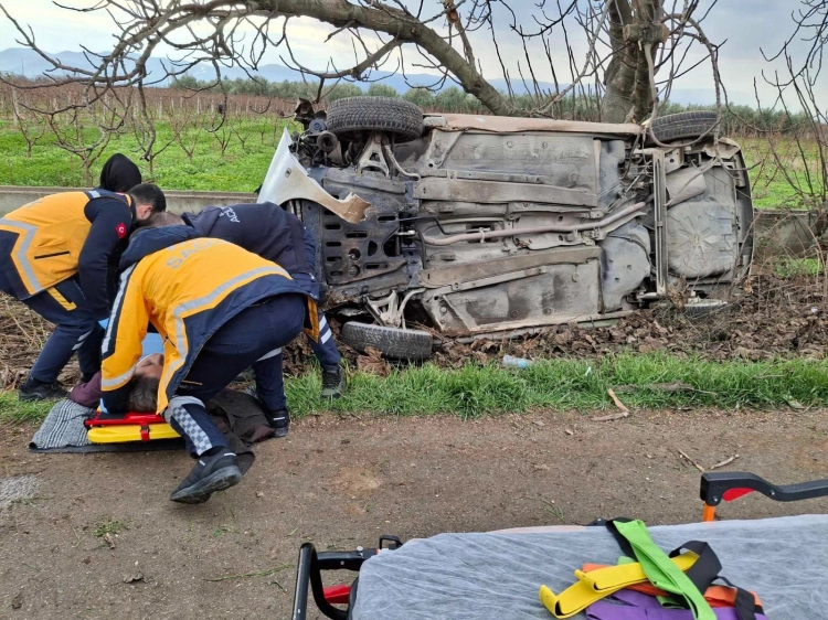 Bursa'da feci kaza! Tırın çarptığı araç tarlaya uçtu