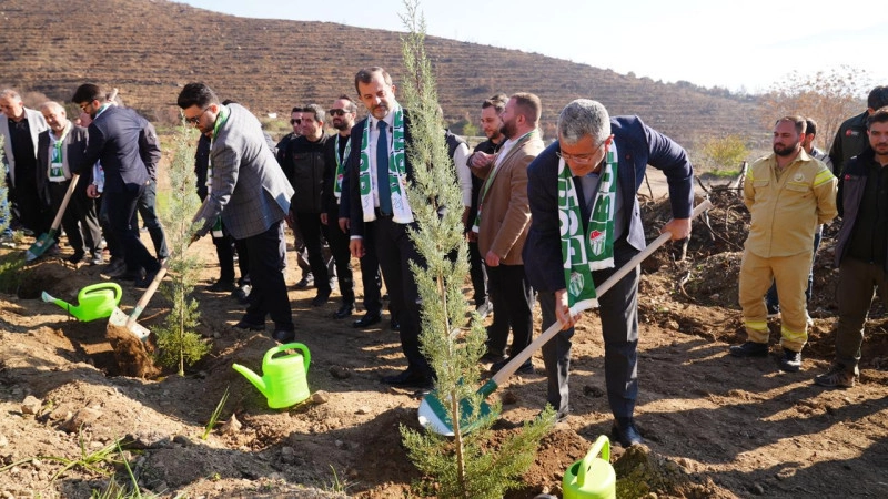 Bursaspor Başkanı Enes Çelik, teknik ekip ve futbolcular ile Uludağ OSB yöneticileri, Karahıdır ve İğdir’deki orman yangını sonrası alanlarda fidan dikerek yeşil Bursa için anlamlı bir adım attı.