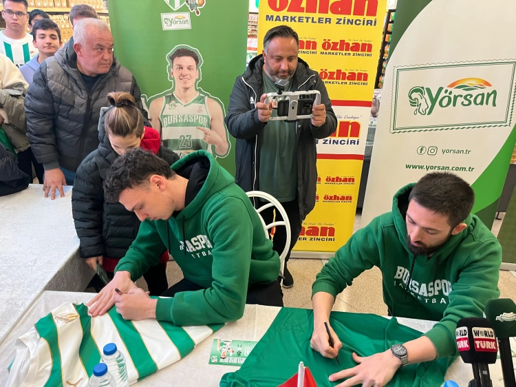 Özhan Marketler Kurumsal İletişim Müdürü Ayşen Yılmaz, Bursaspor’a destek olmaktan mutluluk duyduklarını belirterek, “Özhan Marketler Zinciri olarak bugün Geçit şubemizde Bursaspor Yörsan Basketbol Takımı’nın değerli oyuncularını ağırlıyoruz. İmza günümüzde takım kaptanımız Ömer Utku Al, David Mutaf ve Donte Grantham taraftarlarımızla buluşuyor. Özhan Marketler Zinciri ve Yörsan olarak, şehrimizin takımı Bursaspor’a destek olmaktan ve her zaman yanında yer almaktan büyük mutluluk duyuyoruz. Ayrıca tüm Özhan Market şubelerinde Yörsan ürünlerinin satışını yaparak, bu lezzetleri müşterilerimizle buluşturmaya devam edeceğiz. Etkinliğimize katılan tüm taraftarlarımıza ve Özhan müşterilerine teşekkür eder, Bursasporumuza önümüzdeki maçlarda başarılar dileriz” diye konuştu.