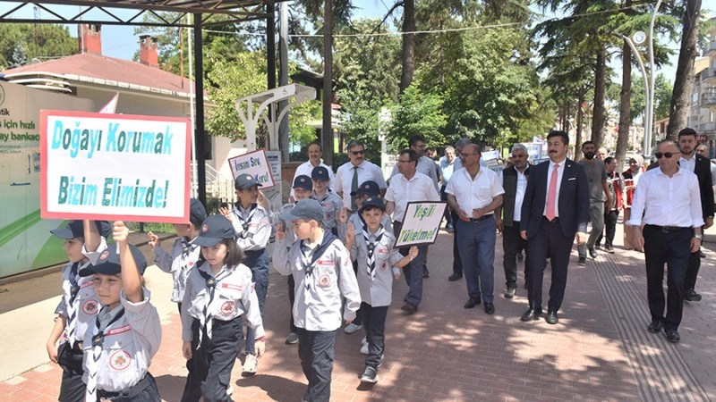 5 Haziran Çevre Günü, Yenişehir’de çeşitli etkinliklerle kutlanıyor. Etkinlikler kapsamında Aydoğdubey İlkokulu öğrencileri tarafından düzenlenen programa Yenişehir Kaymakamı Mustafa Güney, Yenişehir Belediye Başkanı Ercan Özel ve protokol üyeleri katıldı. Aydoğdubey İlkokulu’ndan Osmangazi Millet Bahçesi’ne kadar öğrencilerle birlikte yürüyen protokol üyeleri, burada çevre temizliği yaptı. Öğrenciler daha sonra Kaymakam Mustafa Güney ve Belediye Başkanı Ercan Özel’e geri dönüşümle yaptıkları ürünleri sergiledi.