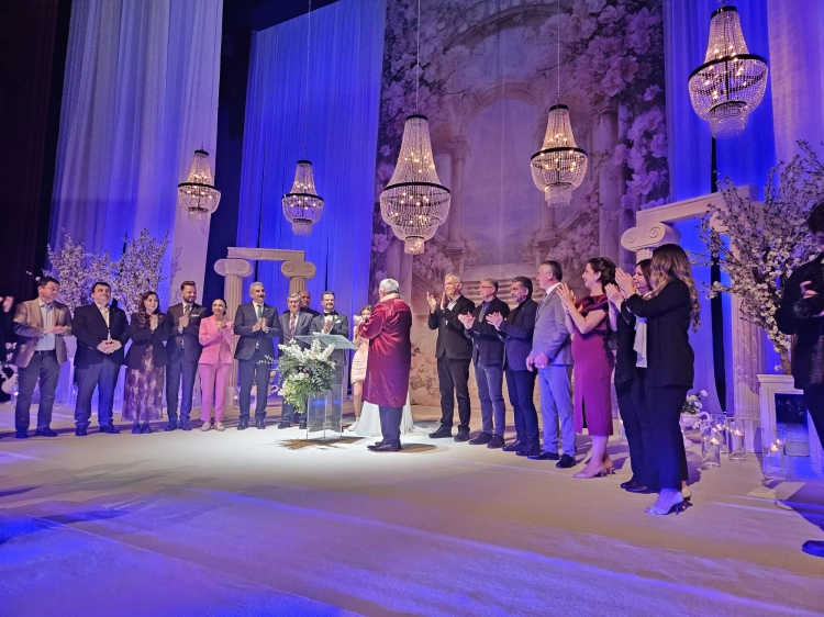 Şahin ve Bayram çiftinin görkemli nikah merasimi, Atatürk Kongre ve Kültür Merkezi Osmangazi Salonu'nda saat 16.00'da gerçekleştirildi. Salon girişinde katılımcılar için kokteyl düzenlenerek ikramda bulunuldu.