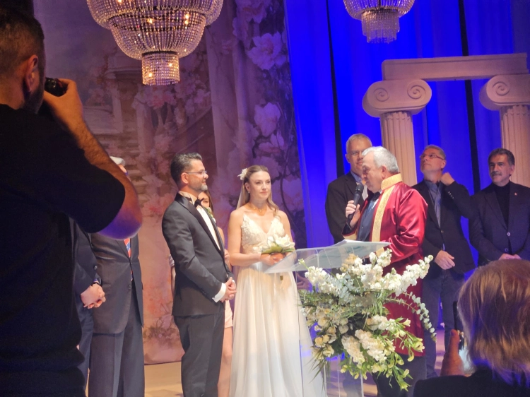 Cumhuriyet Halk Partisi Nilüfer İlçe Başkanı Özgür Şahin, Atatürk Kongre ve Kültür Merkezi'nde yapılan görkemli nikah merasimiyle Emine Bayram ile hayatını birleştirdi.