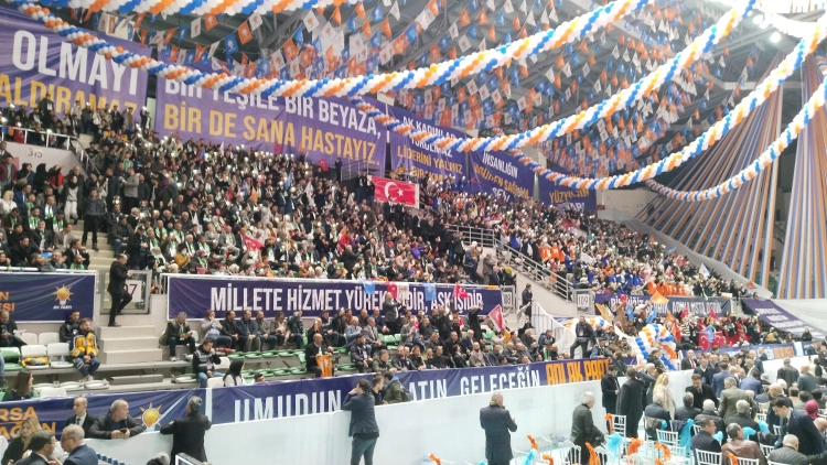 Salonda AK Parti renkleri değil Bursaspor renkleri hakimdi. Vatandaşlarca Bursaspor atkıları kullanıldı.